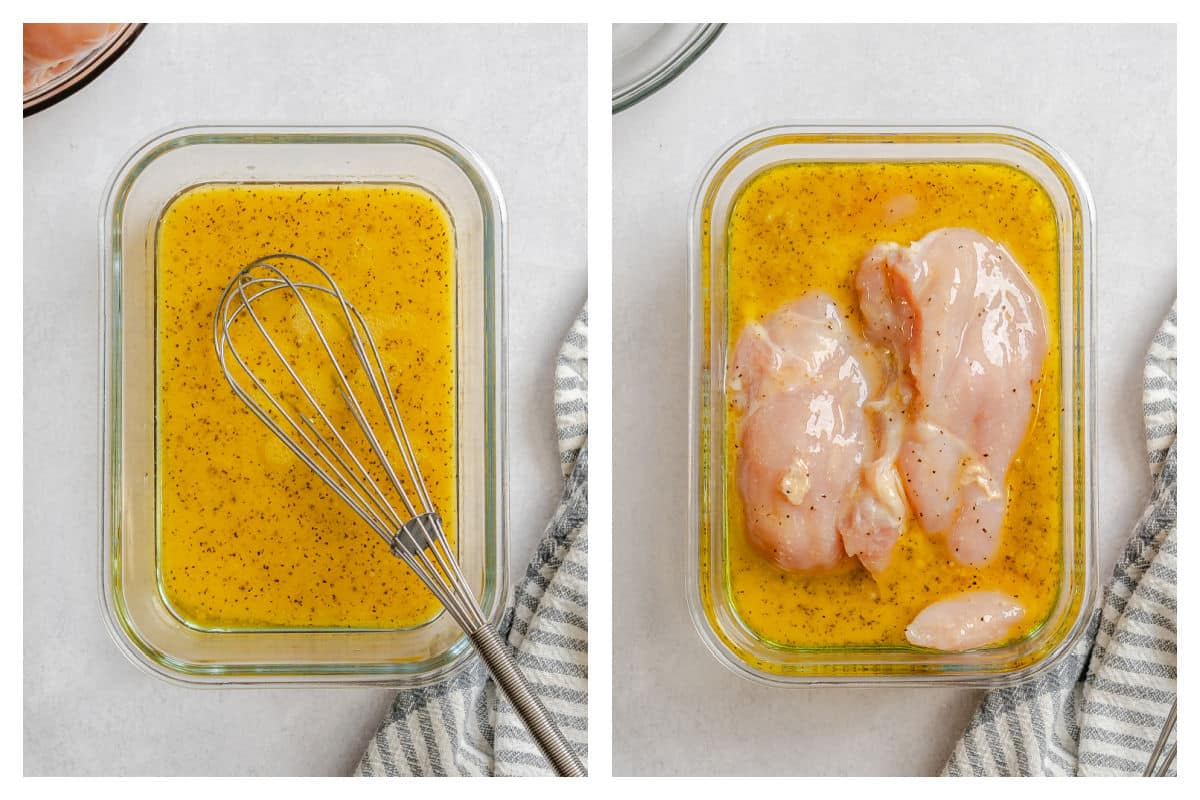 Step 3: Let chicken sit in marinade, covered in the fridge, for at least 30 minutes and up to 2 days.