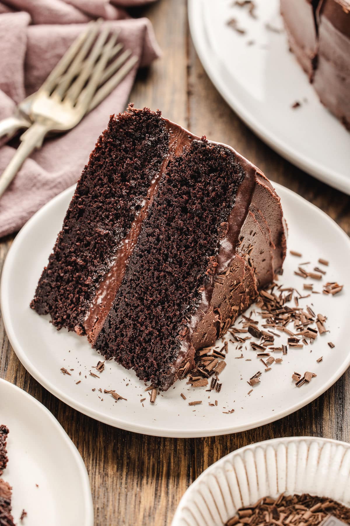 There’s just something that’s so satisfying about a slice of rich, moist chocolate cake! As much as I love more extravagant desserts like my French Silk Brownies, some nights a big slice of delicious chocolate cake is just the thing.