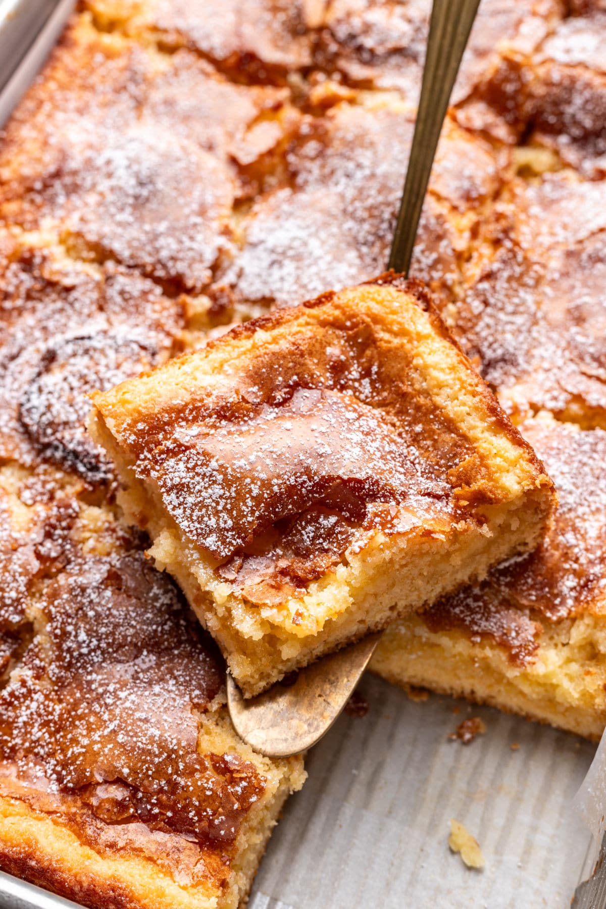 This gooey butter cake is an easy cake mix recipe that’s rich, buttery, and perfectly gooey. A St. Louis classic, this quick dessert comes together in less than an hour with simple ingredients.