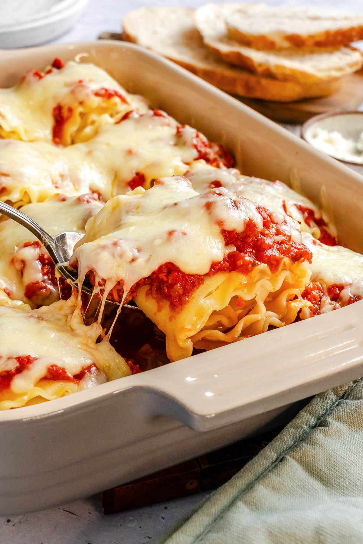 - Serving suggestions: Lasagna rolls are great served with a green salad and garlic bread, garlic breadsticks, or garlic knots.