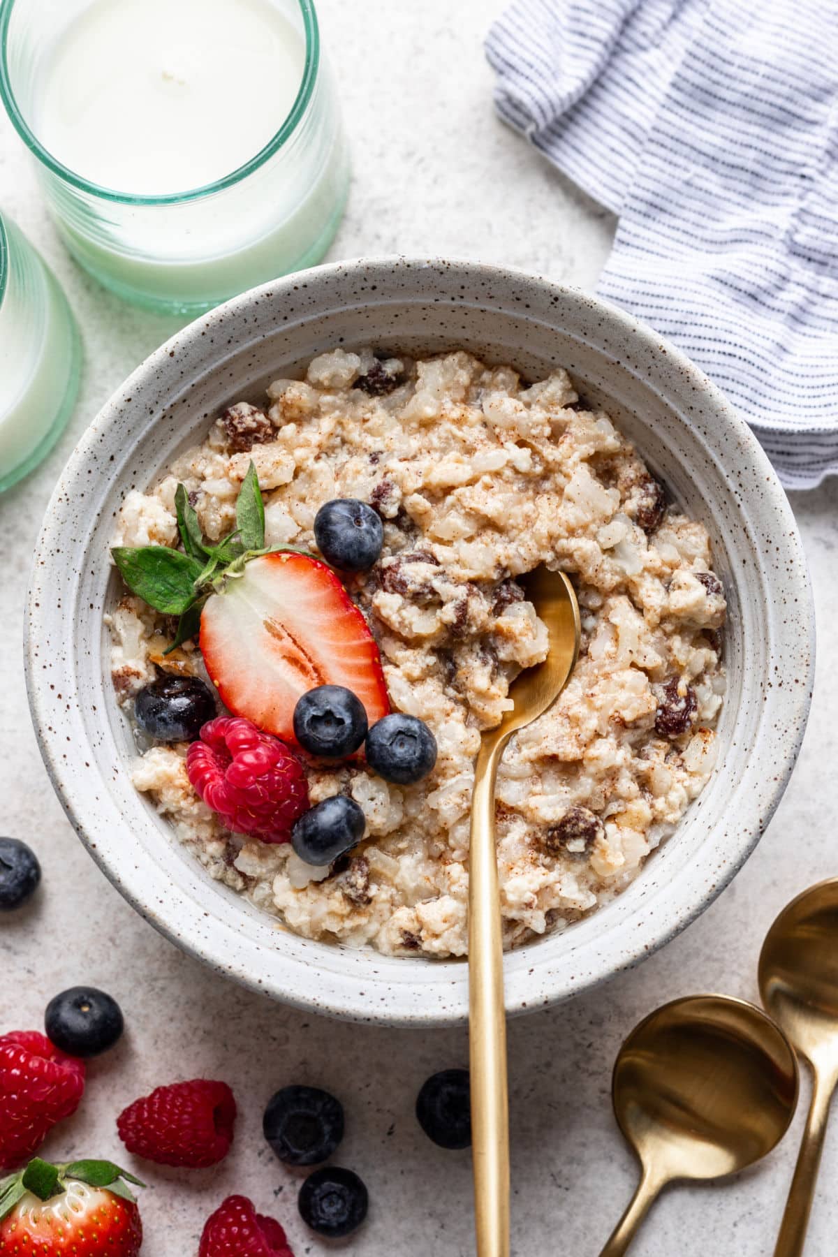 - Rice: I adapted this recipe to use long-grain rice because it’s available in pretty much every grocery store. The original recipe called for short-grain rice. If you can find that, it does make the pudding slightly creamier.
