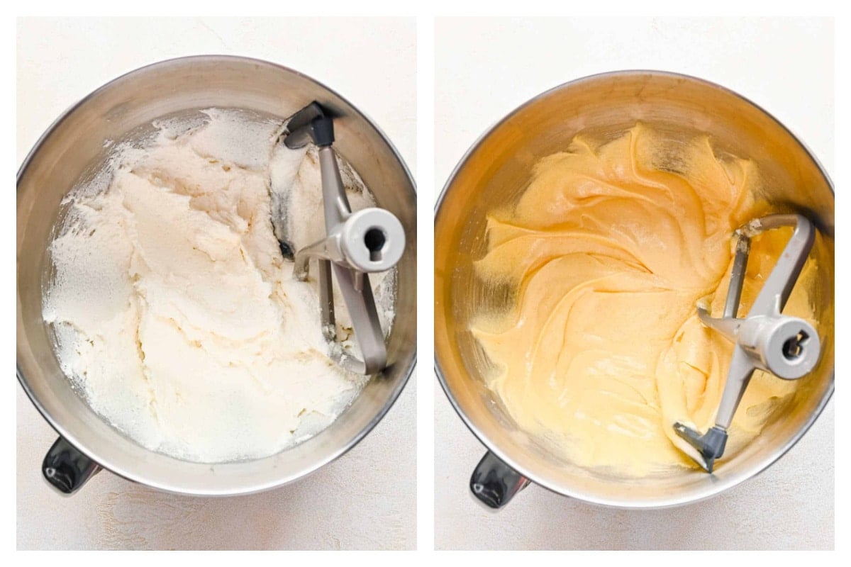 Step 1: Begin by beating the butter and oil together with the sugar, baking powder, and salt until well combined. You want it to be mixed well, so beat for about 2-3 minutes in either a stand mixer or with an electric hand mixer.